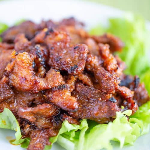 - Adjust the amount of Maesil – use 4 to 5 tsp maesil cheong for 1 lb of pork. It’s not going to taste sweet but just have a hint of sweetness at this level.