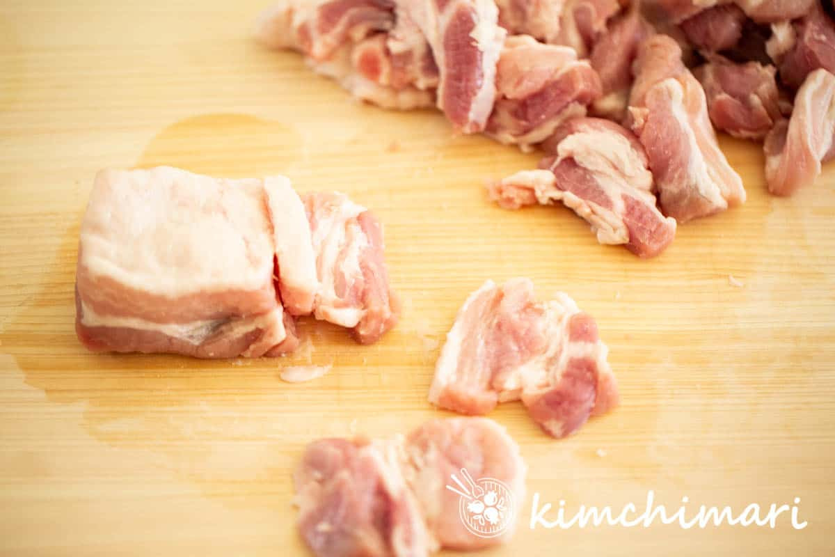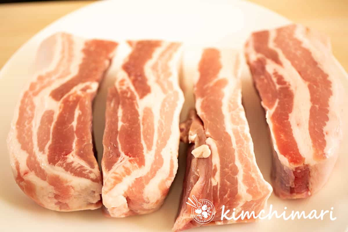 I used Samgyeopsal (삼겹살 pork belly) for this recipe but you can also make this using pork shoulder (앞다리살 apdarisal) or butt (목심살 mokshimsal). See my Know Your Pork Cut post for more info and a diagram.