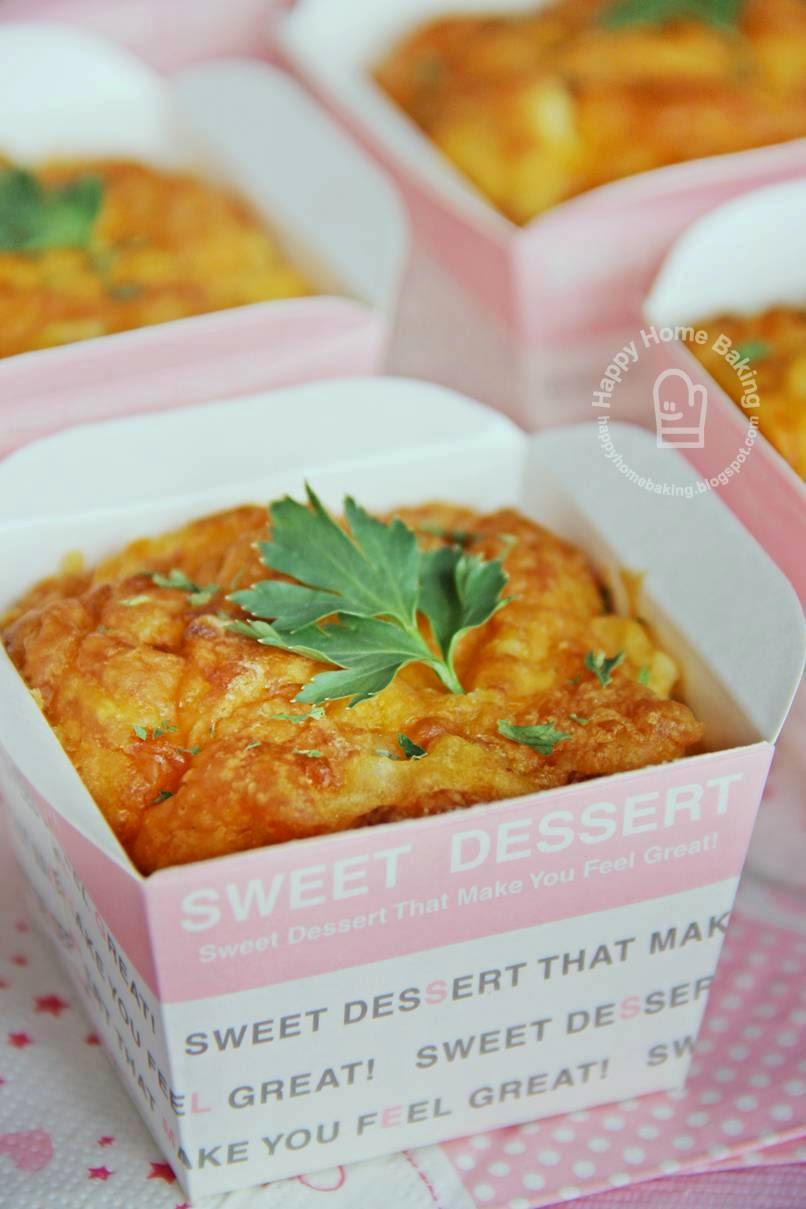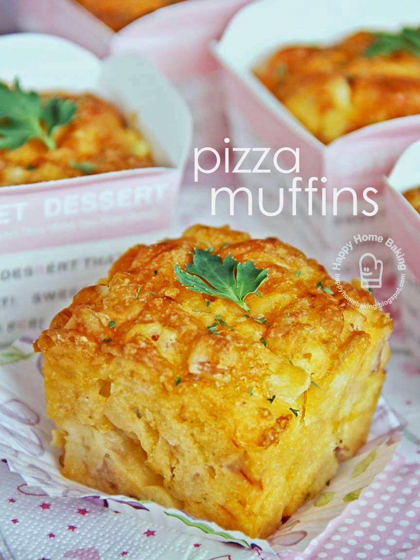 I have some left over cheese, ham and pineapples after making a seafood pizza and a hawaiian pizza. Not knowing what to do with the leftover ingredients, I surfed the net for recipe ideas. Nothing much inspires me when I searched using the words such as 'ham and pineapple'. A silly thought suddenly came to my mind and I typed 'pizza muffins' in the search box. I wasn't expecting anything at all...but to my surprise, pizza muffins is actually nothing new!