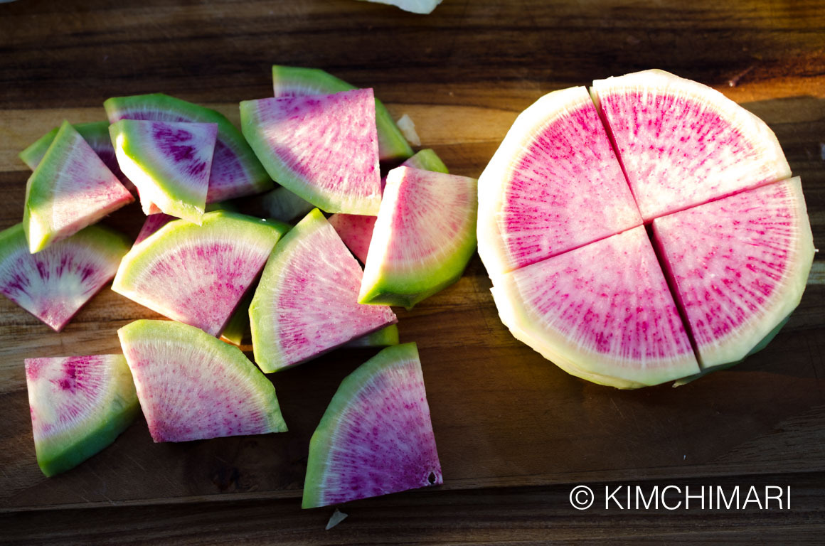 Korean Water Kimchi (Mul Kimchi) with Watermelon Radish