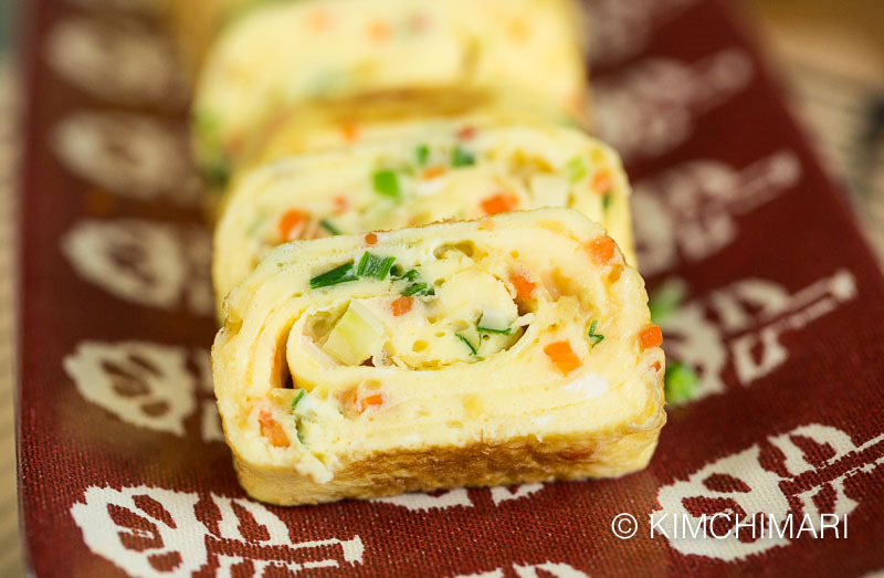 Gyeran 계란 means ‘egg’ and Mari 말이 means ‘to roll or rolled’. So I’m calling it Egg Roll..another name for it is Dalgyal Mari 달걀말이. Gyeran has its roots in Hanja (Chinese characters) while Dalgyal is a pure Korean word based on Hangeul.