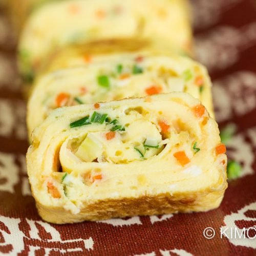 Korean Egg Roll (Gyeran Mari) is a very easy and simple side dish that is a favorite in lunchboxes. It is wonderfully soft, fluffy, savory and mild, tasting very similar to an omelet but a little firmer and chewier. And the addition of green onions makes it a perfect banchan in a Korean meal. All in less than 20 minutes!