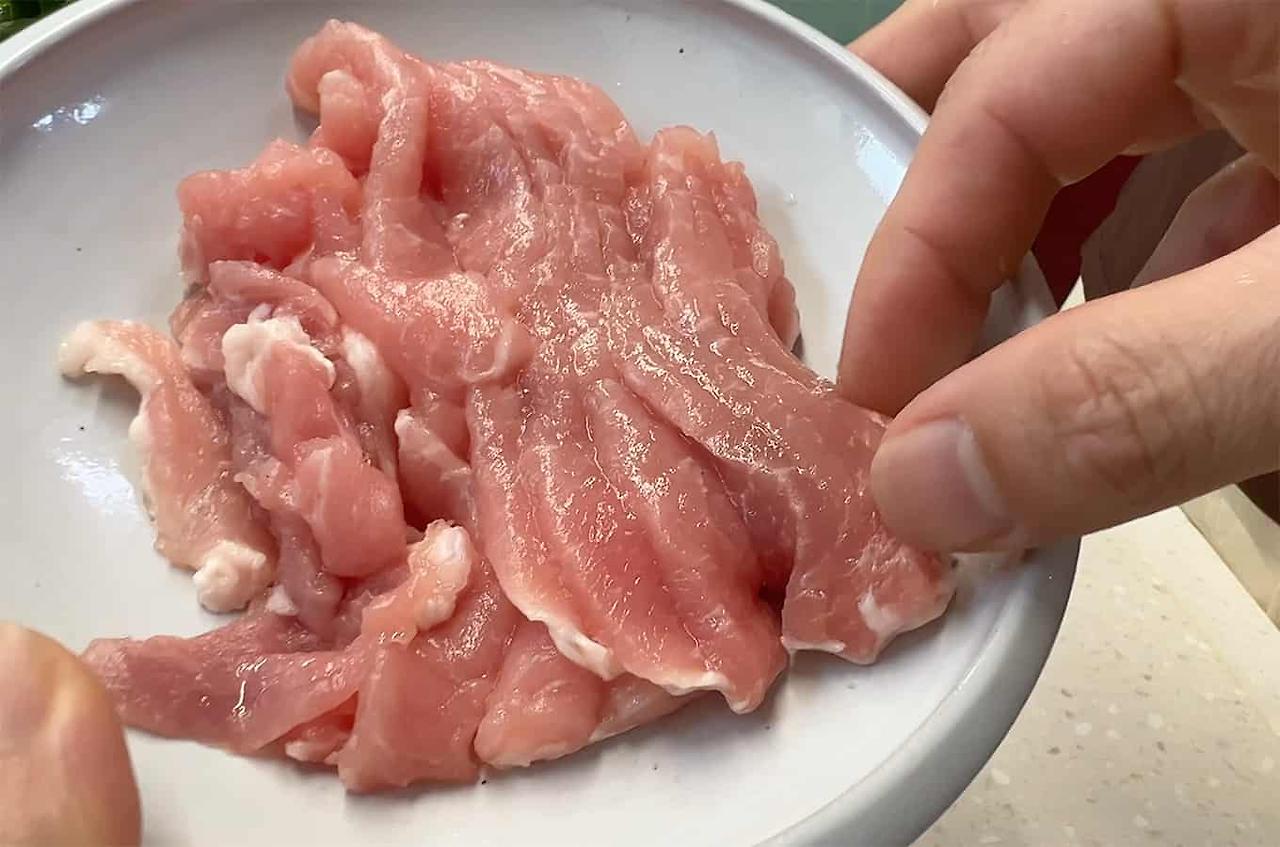 Pour the marinade over the meat slices. Then thoroughly mix with your hands. Set it aside and let it marinate.