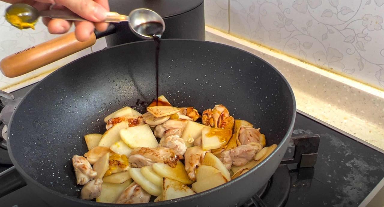 Slowly pour the soy sauce along the walls - so it can heat-up & taste deeper!