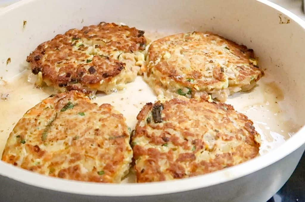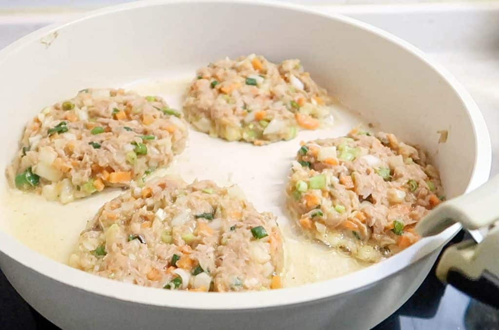 If you get the ratio of ingredients correct (don’t worry, we’ll give you the proper ratio), the tuna patties will not break apart when flipping.