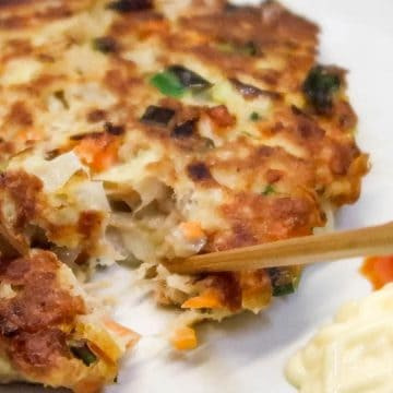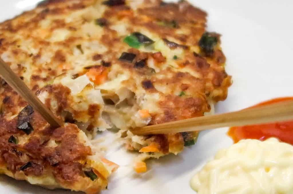 I recommend eating this tuna jeon with a dollop of (Japanese) mayonnaise and your hot sauce on the side.