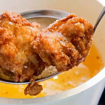 Note: When you squeeze lemon juice onto the chicken, it will start to lose its crispiness. So I recommend squeezing it on right before you eat!