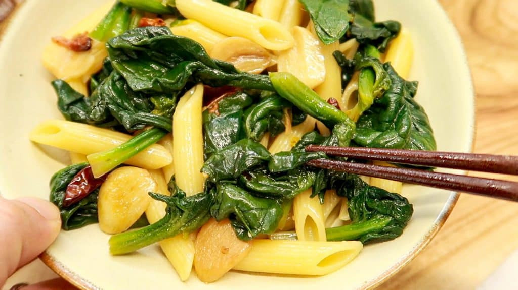Korean Spinach & Anchovy Pasta!