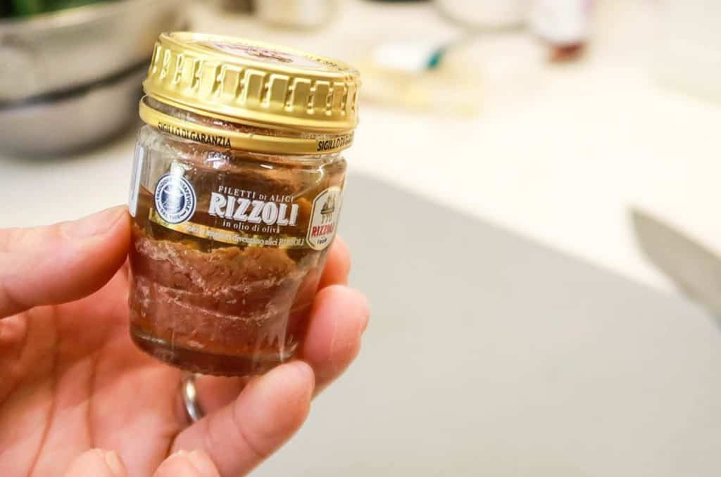 Then, we’ll also add a key ingredient – anchovy filets!