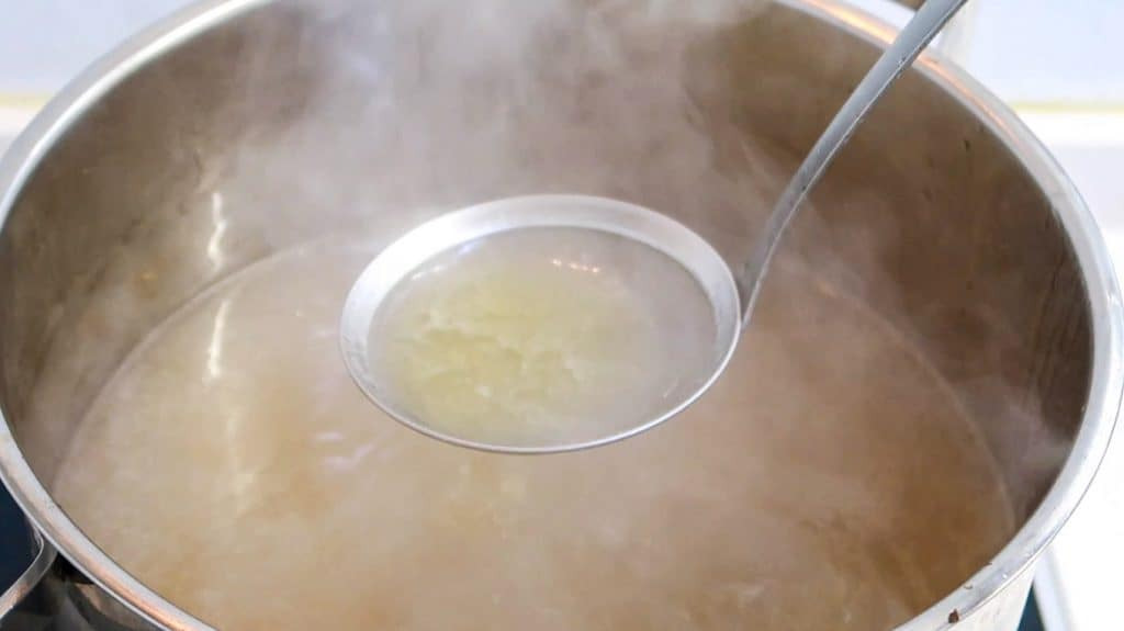 Now, give the soup a good stir with a soup ladle.