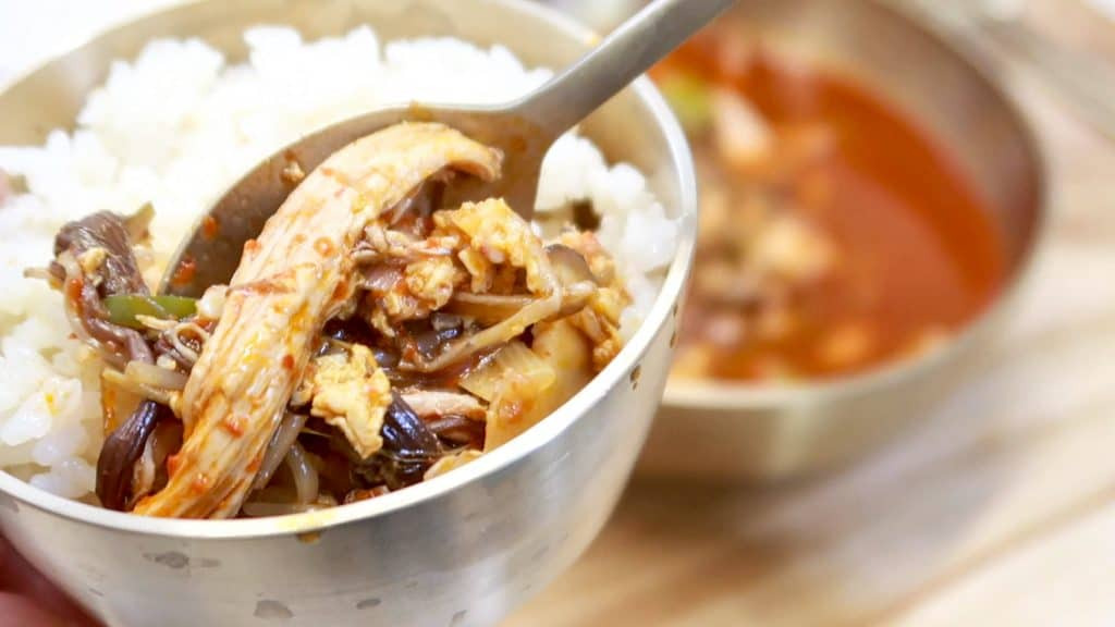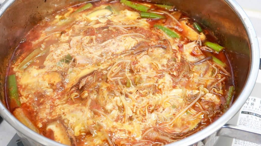 Growing up, my mom would make this dakgaejang in an extra-large pot. And it would sit there for a week – waiting for me after school!