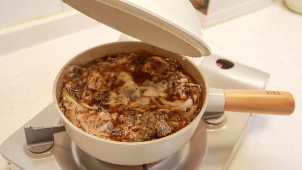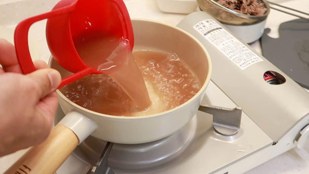 Then, we’ll season the beef broth with just the right amount of soy sauce and sugar.