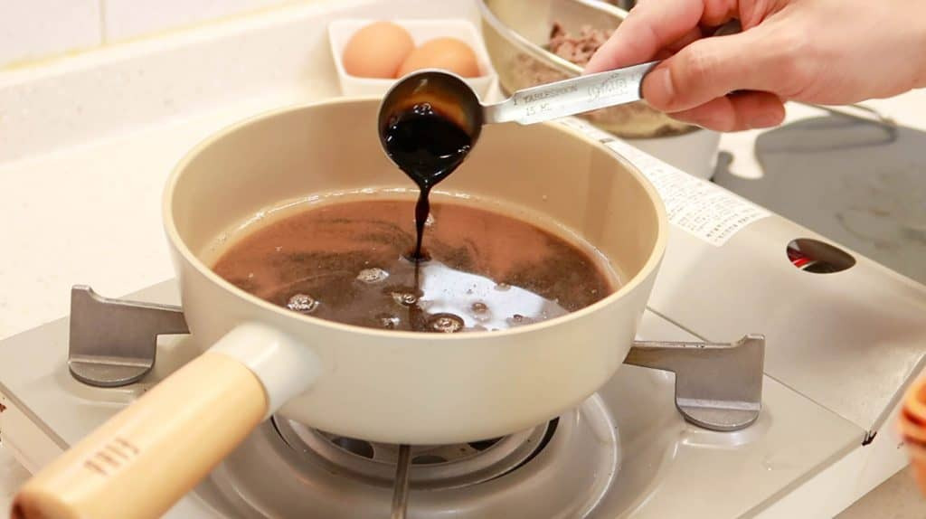 Season with Soy Sauce (2.5 Tablespoons) and Sugar (1 Tablespoon).