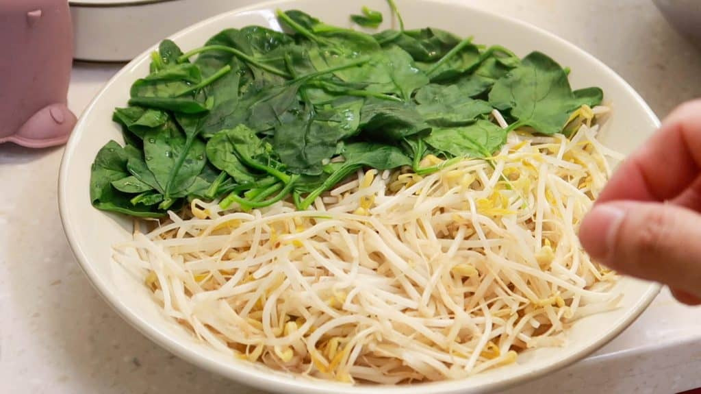 Instead, lift the steamed sprouts from the plate and place onto your rice (no need to squeeze the sprouts as we don’t want to lose that crunchy texture).