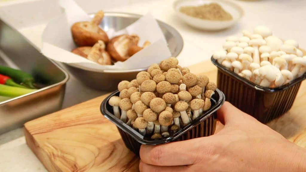 We’re using white & brown beech mushrooms, along with 2 Shiitake mushrooms.